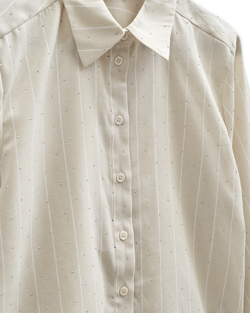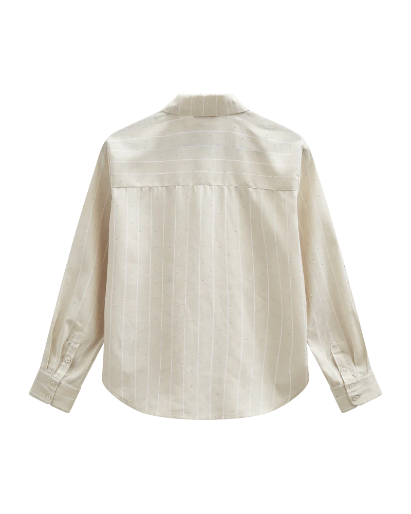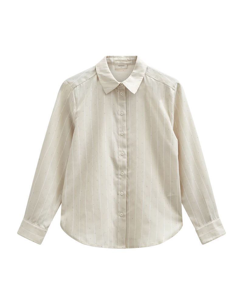 Opdag denne skjorte fra Freequent i en let og behagelig kvalitet, perfekt til både hverdag og arbejde. Skjorten har et stribet print med allover similisten, der skaber en elegant og iøjnefaldende effekt. Modellen har lange ærmer med manchetter, knaplukning foran og en regulær pasform, som giver komfort og bevægelsesfrihed.