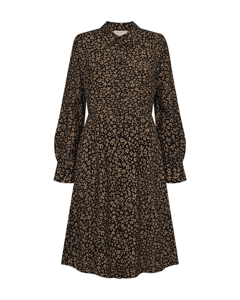 Freequent er kendt for sit stilrene udtryk, og Molli-kjolen er ingen undtagelse. Den kan styles med alt fra støvler og strik i de kølige måneder til sandaler og lette accessories om sommeren. Perfekt som basis i garderoben – og som sæsonens must-have kjole.