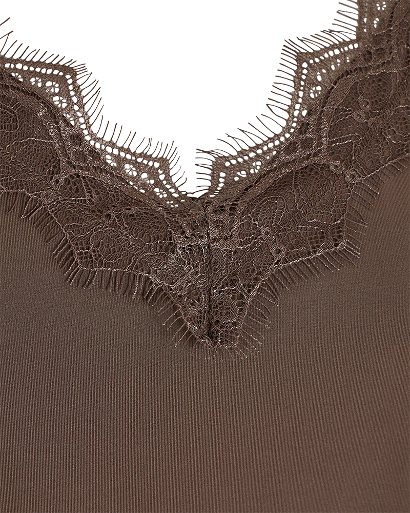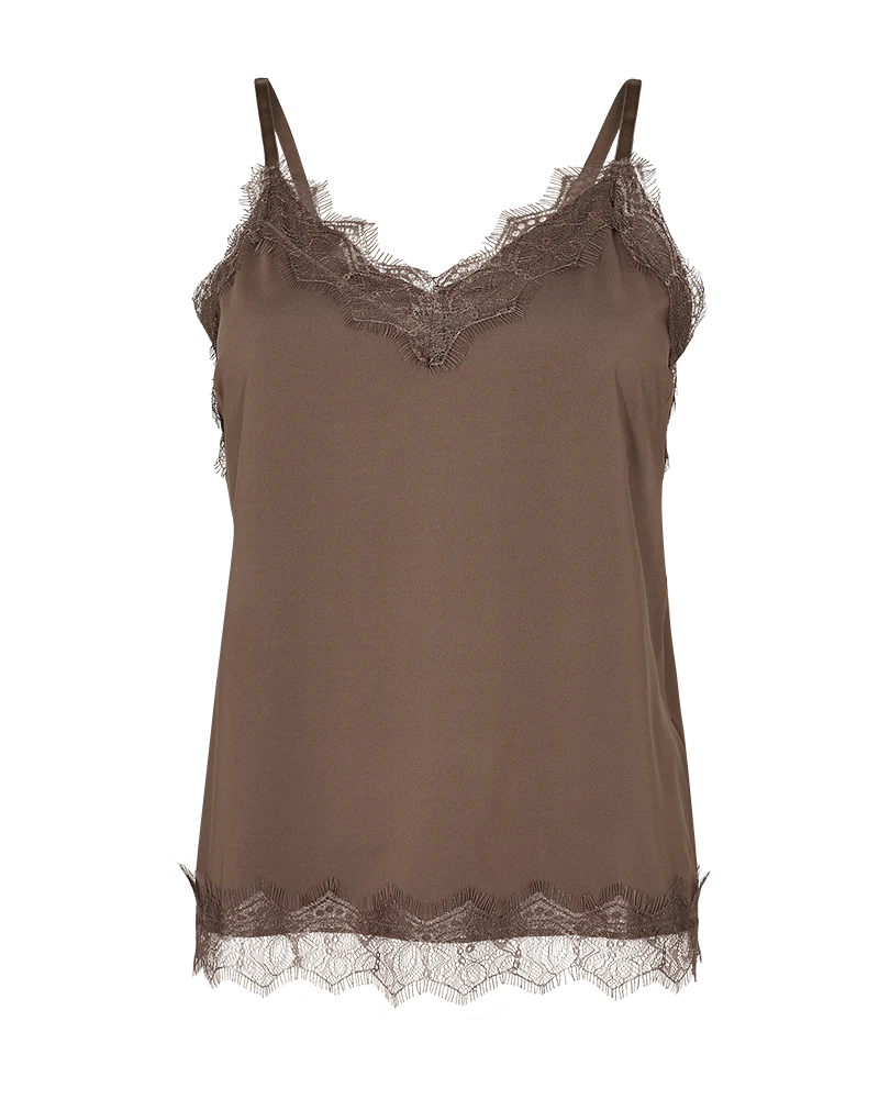 Smuk og feminin top fra FREE/QUENT med justerbare stropper og flotte blondedetaljer.