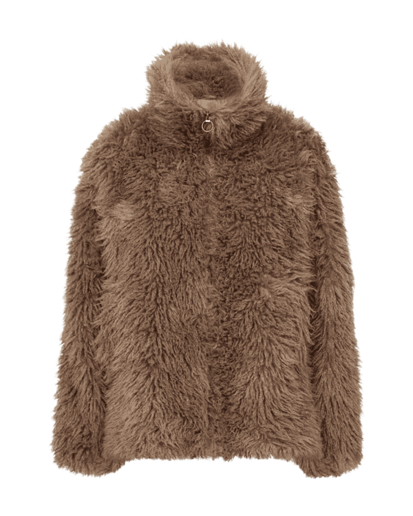 Tilføjvarme til din garderobe med denne brune jakke fra Freequent i blød, frynset faux fur med foring. Jakken har et enkelt og tidløst design med lange ærmer, frontlynlås, høj krave og praktiske skjulte sidelommer, som giver både stil og funktionalitet.