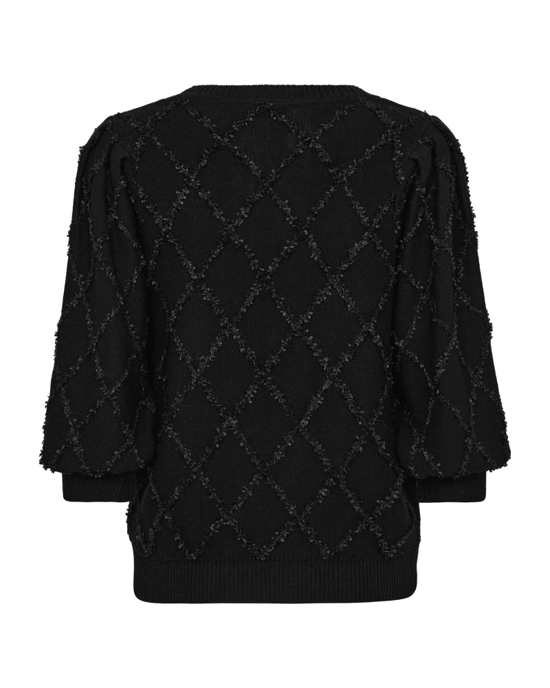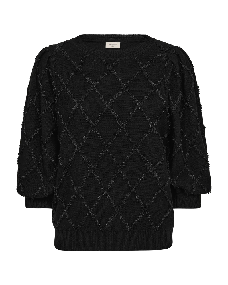 Pullover fra Freequent i en finstrikket kvalitet med et flot strukturmønster. Pulloveren er enkel i modellen med trekvartlange ærmer, brede ribkanter samt en regulær pasform.