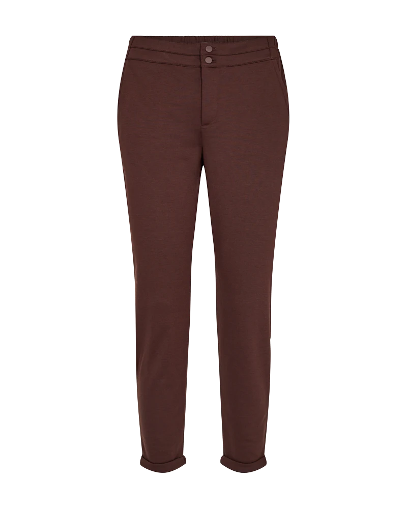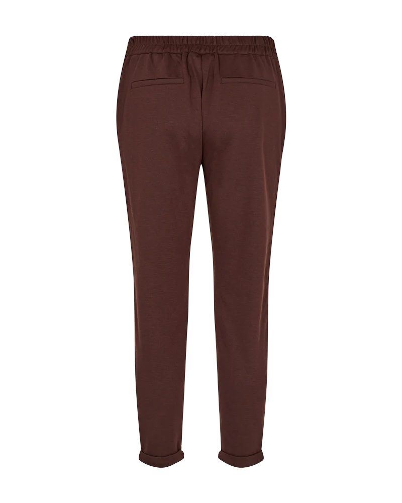 Disse ankellange bukser fra Freequent er både stilrene og behagelige. De er lavet i en blød og fleksibel kvalitet, som sikrer en god pasform hele dagen. Modellen har en høj talje med elastik bagpå, som giver komfort og en flatterende silhuet.