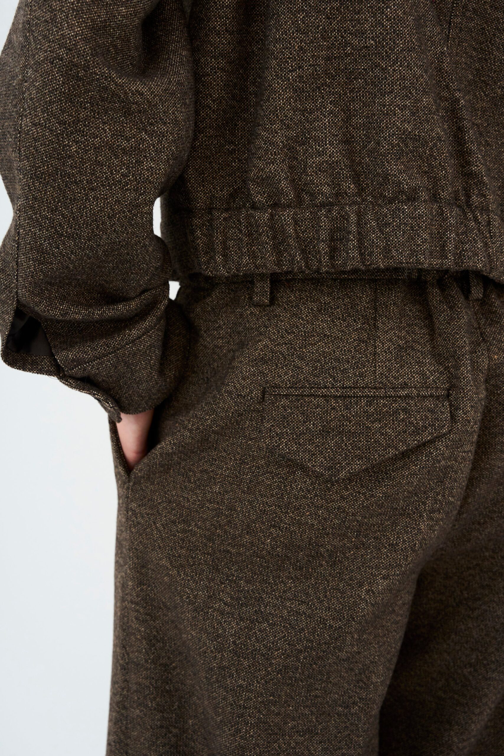 Tilda Utility Jakken kombinerer militærinspirerede detaljer med blød, skræddersyet elegance. Den er fremstillet i en varm, brun tweed og har markante lommer med knapper samt detaljer på skuldrene, der giver et struktureret udtryk. Jakken har en moderne, cropped pasform, som giver både stil og varme – et unikt statement-piece til din garderobe.