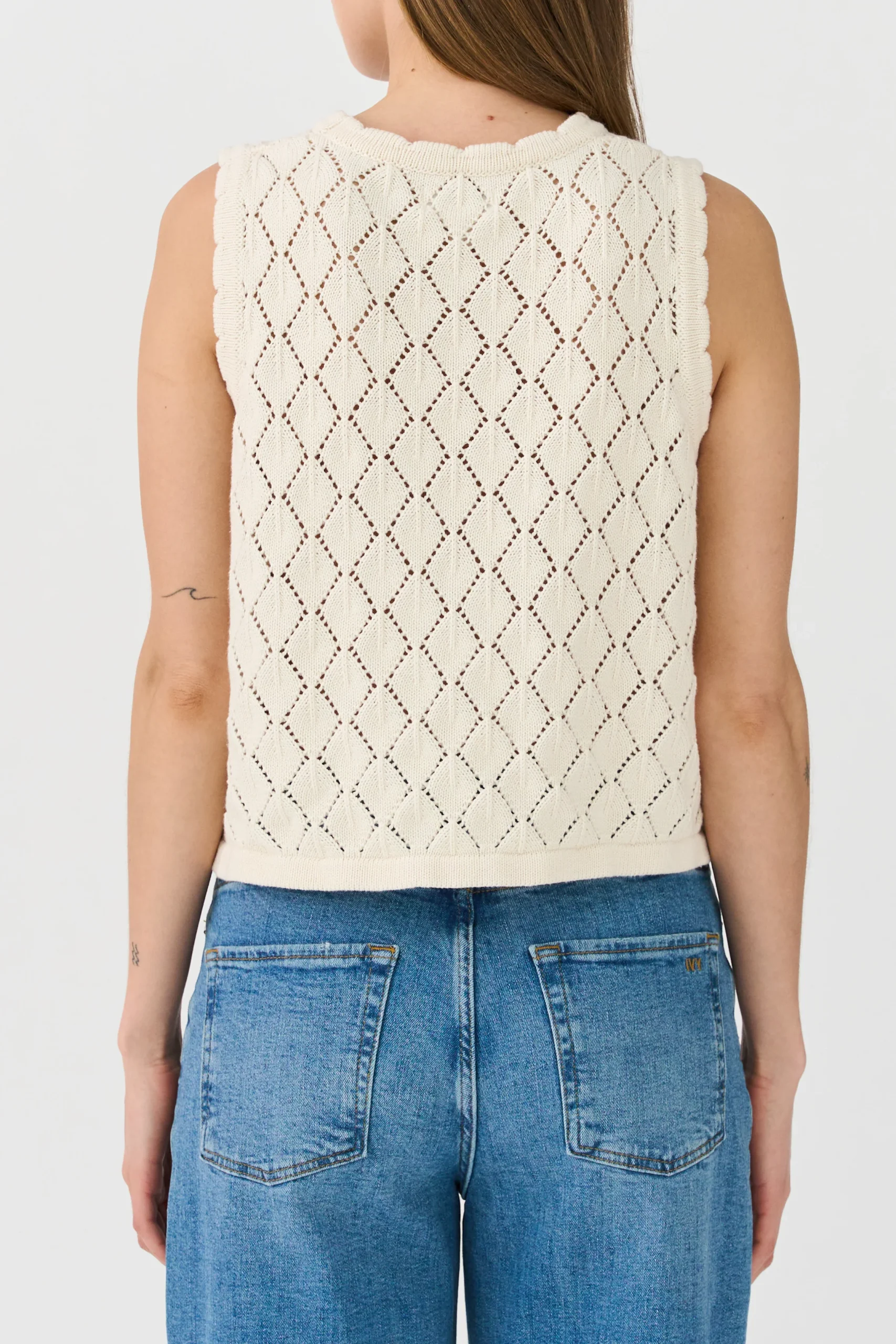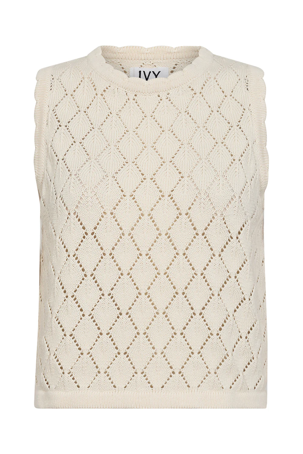 Smart og anvendelig hæklet top fra IVY Copenhagen i råhvid. Toppen kan både bruges som top og vest og er lavet i et luftigt og åndbart materiale.
