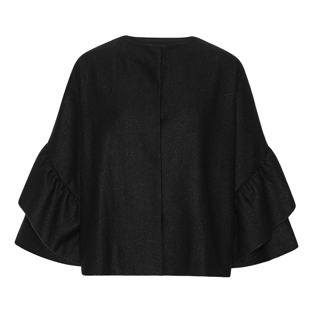 Den flotte spencer jacket kommer i en sort farve med en smuk lille detalje af glimmer.