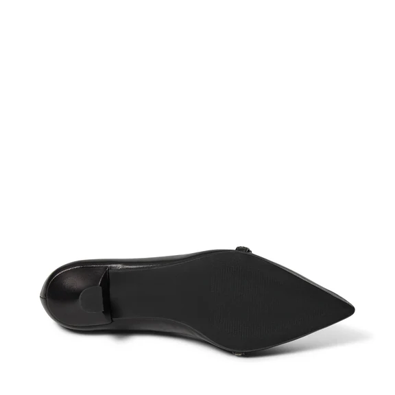 Arian Black fra Pavement er en klassisk og elegant sko i sort skind med en lav hæl, der kombinerer komfort og feminint design. Den enkle silhuet og det eksklusive materiale gør skoen perfekt til både hverdag og festlige anledninger.